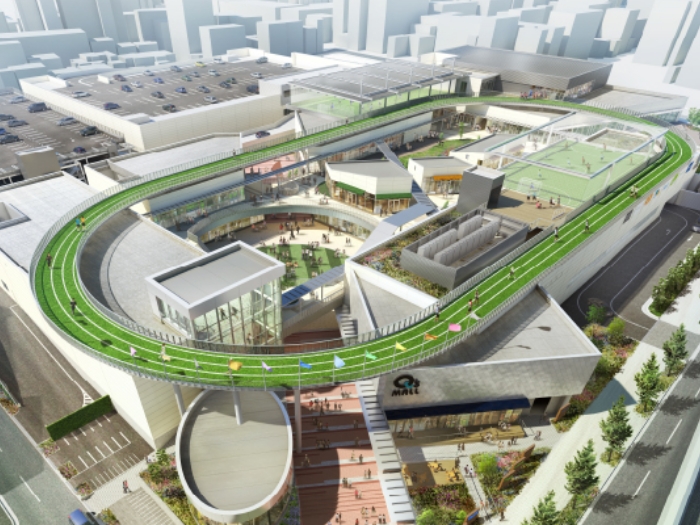 屋上に設置されたランニングトラック「エアトラック」は、商業施設としては日本初。